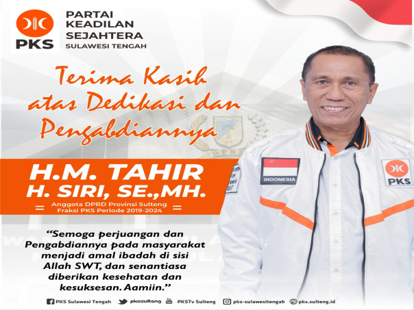 Sebagai partai yang selalu mendukung kebaikan dan kesejahteraan rakyat, PKS Sulawesi Tengah juga menyampaikan apresiasi kepada semua pihak yang telah bekerjasama dengan Bapak H.Tahir H. Siri selama masa pengabdiannya. Dukungan dan kerja sama yang terjalin menjadi salah satu faktor penting dalam mewujudkan cita-cita pembangunan yang lebih baik bagi masyarakat Sulawesi Tengah. (Naufal)
